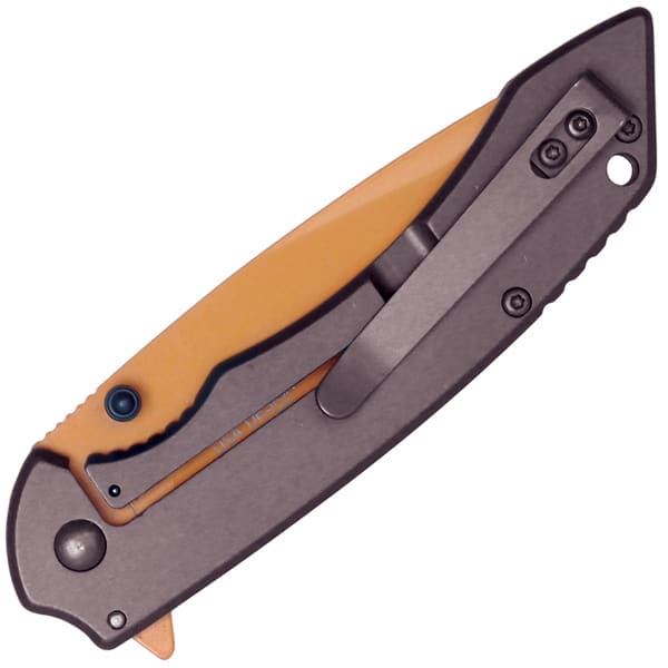 Assisted Open Folding Pocket Knife with Grey handle and Orange Blade