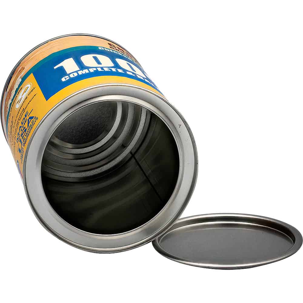 Keep valuables hidden in plain sight with this realistic dog food can diversion safe. Crafted to look identical to an everyday can of dog food, this stash container features a seamless pop-open bottom that reveals a spacious 3″ x 3″ x 4 1/2″ storage compartment. The included smell-proof pouch ensures complete discretion while protecting your items from odors.