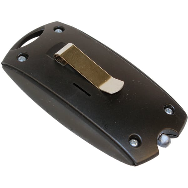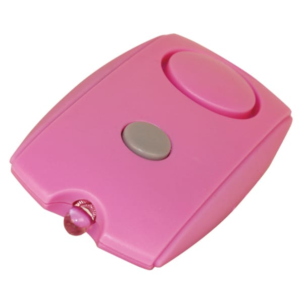 The Mini Personal Alarm LED Flashlight with Belt Clip can be attached to a keychain. It has a very sleek and compact design, but don?t let its small stature fool you. This easily activated alarm will emit an ear piercing 120dB alert that will send your aggressor fleeing for the confines of a sound proof room. You can deactivate this alarm just as easily as you activated it, with the click of a perfectly located button. This alarm fits easily in your pocket, purse, can be clipped onto your belt, or attached to a key chain. The built in LED flashlight allows you to shed some light on any situation. Anyway you chose to carry it, it will be nothing but beneficial to your safety. Uses 3 replaceable LR44 batteries (included). Measures: 3″ x 1 ½” x ½”.