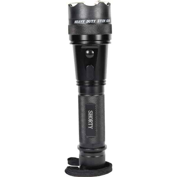 The Shorty 75,000,000 volt Stun Gun with Flashlight. It’s small design measuring 7 1/2″ x 1 7/8″ packs a powerful punch with 4.7 milliamps of power. The bright 120 lumen flashlight will light up any scene. It’s made with high quality aircraft grade aluminum and can be used as a baton as well. The Shorty comes with a holster, wrist strap lanyard, charging cord, and has an on/off safety switch. Lifetime warranty.