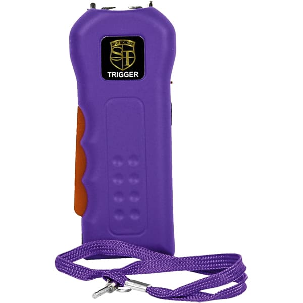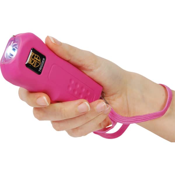 The Trigger 75,000,000 volt stun gun flashlight with wrist strap disable pin has a unique trigger design for easy operation and lifetime warranty. With a quick pull of the trigger you can have an attacker begging for mercy. It has a rubberized coating to ensure a nice, tight grip. The super bright flashlight will blind any attacker or it can be used as an everyday flashlight.